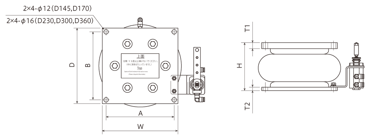| Pressure receiving area (cm2) | 196 | 260 | 470 | 750 | 1070 | |
