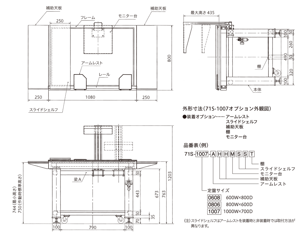 ※スライドシェルフはアームレストを装着時と非装着時では取付方法が異なります。